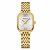 At the heart of this elegant watch is a precise quartz movement, ensuring reliable timekeeping at all times. The square dial, with its numberless design, gives the watch a modern, minimalist aesthetic, while the gold stainless steel strap offers durability and comfort. This stylish watch is water-resistant up to 3 ATM, which means it can handle splashes from washing your hands or light rain, making it as functional as it is fashionable.