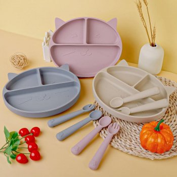 Baby Silicone Suction Bowl Plate with Feeding Spoons