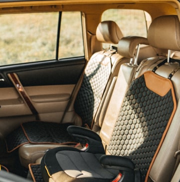 I purchased a 2017 Land Rover a few days before purchasing the Car Seat Protector and the Seat Back Protector Set Hexy One. I searched online for brown seat protectors in hope of finding something to put under a car seat to help not dent the leather. I wasn’t even looking for or expecting to find the back seat protector, but am so glad that I did! I have a 3 year old that just loves to kick the backs of our seats, so it being a new-to-me vehicle, I definitely wanted that feature!