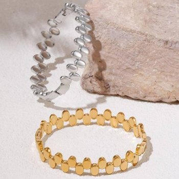Fashion Oval Beads Stainless Steel Openable Cuff Bracelet