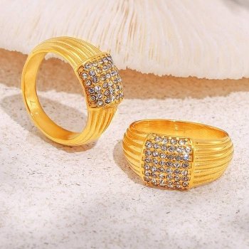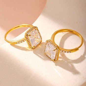 Shiny Square Zircon Ring for Women – 18k Gold Plated Adjustable Stainless Steel Ring