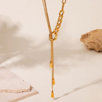 18k Gold Plated Stainless Steel Opera Tassel Necklace for Women – Multi Chain Long Sweater Chain