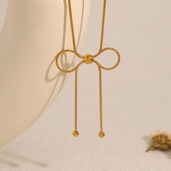 18K Gold Plated Snake Chain Bow Pendant Necklace for Women – Trendy & Simple Jewelry