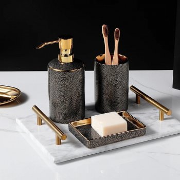 Elegant Marbled Ceramic Lotion and Shampoo Storage Bottle